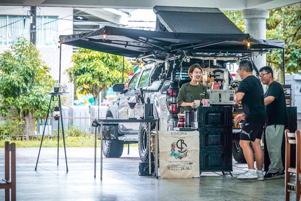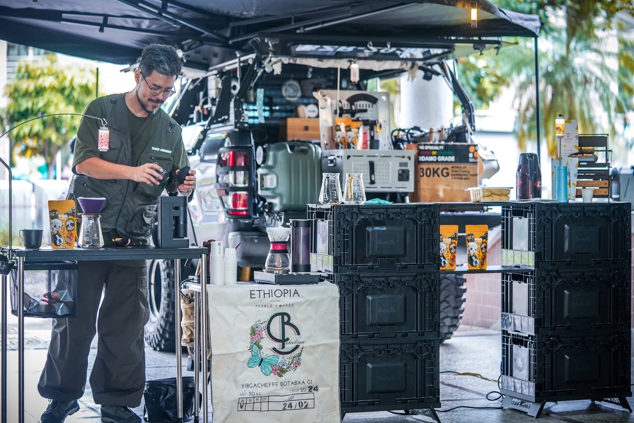 虎老闆開上夢想的咖啡車,在學校沖煮了150杯手沖咖啡,與有教無類辛苦的老師們分享,我們站了三小時不停止沖煮,教師們趁下課來提振精神,豐富的花果香充滿在你我之間,工作、生活、夢想、露營、咖啡,熱情無私的分享,快樂一直在我們身邊。